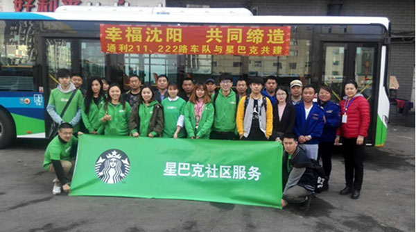 圖為: 211、222路車隊(duì)黨支部與星巴克開(kāi)展“幸福沈陽(yáng),共同締造”主題共建活動(dòng)。