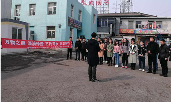 圖為:218路車隊(duì)黨支部與沈陽(yáng)農(nóng)業(yè)大學(xué)水利學(xué)院在218路終點(diǎn)站大東門廣場(chǎng)開(kāi)展宣傳《萬(wàn)物之源 滴滴珍貴 節(jié)約用水 你我同行》為主題的倡議儀式,農(nóng)大水利學(xué)院的學(xué)生在大東門廣場(chǎng)與車隊(duì)職工共同宣傳節(jié)約用水,人人做起,從點(diǎn)滴開(kāi)始。通過(guò)宣傳,讓大家了解節(jié)約用水的重要意義。