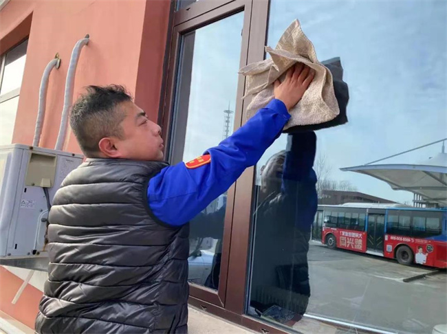 帶班隊(duì)長(zhǎng)及黨員駕駛員王鳳岐、蘇野拿起工具,對(duì)駕駛員休息室、站區(qū)欄桿等衛(wèi)生進(jìn)行清潔