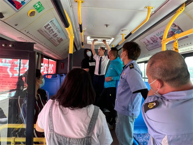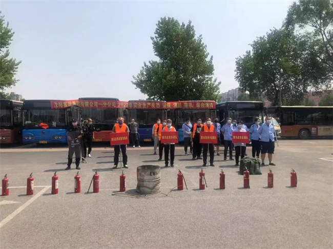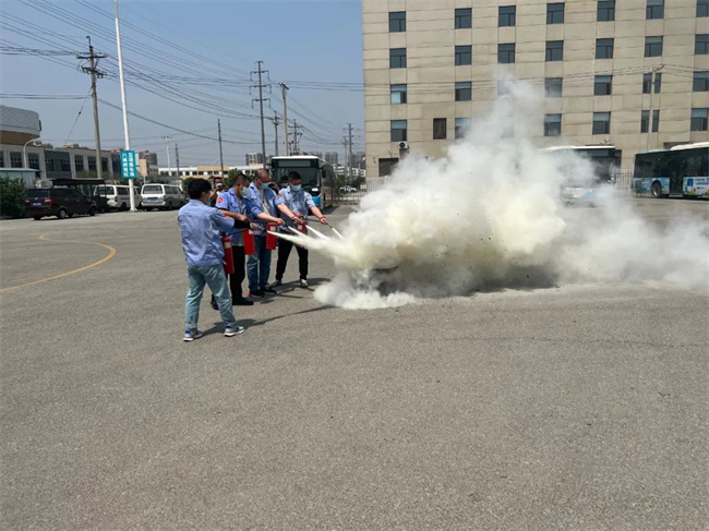 會后,在公司院內(nèi)進(jìn)行實(shí)地演練,模擬公交車輛突發(fā)火災(zāi)時(shí),駕駛員在應(yīng)急情況下緊急停車,疏散乘客,正確使用滅火器進(jìn)行滅火等內(nèi)容。