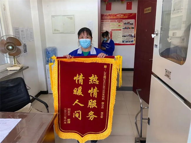 第二天,乘客劉女士專程來到260車隊(duì),將一面寫有“熱情服務(wù) 情暖人間”字樣的錦旗交到了車隊(duì)并說道:“非常感謝車隊(duì)培養(yǎng)了這么優(yōu)秀的駕駛員,因節(jié)日期間急著補(bǔ)一批貨,又趕上家里缺人手,我才一個(gè)人前往五愛市場。本來還擔(dān)心駕駛員不會(huì)讓我上車,或者嫌棄我耽誤時(shí)間,沒想到遇到了兩位熱心腸的駕駛員,他們耐心細(xì)致的幫助我解決了困難,讓我倍感溫暖。為表感激之情,我特意趕制了一面錦旗了表寸心,謝謝你們!”
