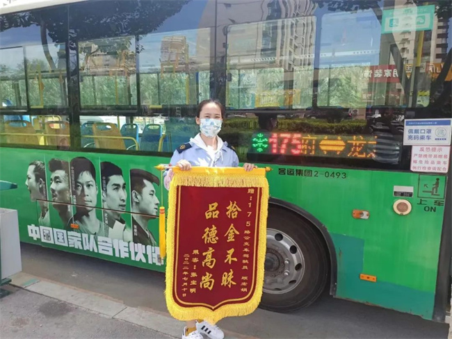 隨后,車隊(duì)管理人員通過證件信息聯(lián)系到了失主,失主聽說自己丟失的手包被175路駕駛員拾到并在車隊(duì)妥善保管時(shí),喜出望外。雙方約定了時(shí)間,失主趕到車隊(duì),顧宏娟親手將手包遞交到失主手中。失主當(dāng)即表示要拿出現(xiàn)金作為酬謝,被顧宏娟婉言謝絕。失主為表示對駕駛員的感謝和敬意,特意制作一面錦旗送到車隊(duì)。