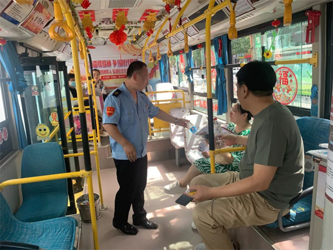 期間學(xué)生家長在公交車上休息,王樹祥為大家準(zhǔn)備了水、急救物資、乘涼用品等,家長們對車隊(duì)提供便利條件和溫馨的舉動表示感謝。