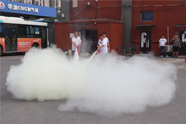 培訓(xùn)結(jié)束后,大家來(lái)到通運(yùn)公司院內(nèi),由李教官為大家進(jìn)行消防、反恐方面的指導(dǎo),并模擬公交車(chē)輛突發(fā)火災(zāi)事故時(shí),駕駛員應(yīng)如何采取緊急停車(chē)、開(kāi)啟車(chē)門(mén)、切斷電源、疏散乘客到安全位置等應(yīng)急措施,以及如何正確使用滅火器進(jìn)行滅火的實(shí)操演練。