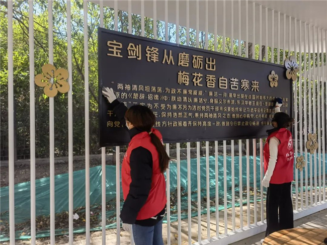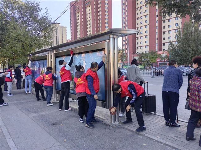 活動(dòng)中,志愿者們身穿紅馬甲,化身“志愿紅”,大家一同來(lái)到附近轄區(qū)的園區(qū)內(nèi)開(kāi)展“大清掃”活動(dòng),對(duì)街道上的護(hù)欄、公交候車?yán)燃罢九频裙苍O(shè)施進(jìn)行擦拭清潔,此外,志愿者們對(duì)綠地上的垃圾進(jìn)行了統(tǒng)一清掃。