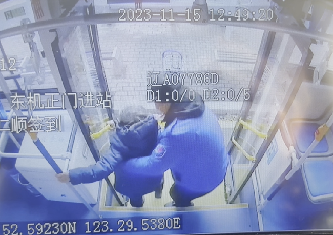 到達(dá)終點(diǎn)站東機(jī)正門,這位老人起身準(zhǔn)備下車,劉仁順主動(dòng)上前再次抱著老人向車下走去,并將手推車交到老人手中,老人向劉仁順表示了感謝后準(zhǔn)備離開。