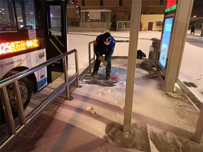 沈陽客運(yùn)集團(tuán)各運(yùn)營單位及時(shí)啟動(dòng)應(yīng)急預(yù)案,各車隊(duì)管理人員與駕駛員提前到崗,清除場區(qū)及候車?yán)确e雪,做好運(yùn)營前車輛安全檢查,提前預(yù)熱車輛,保證車內(nèi)溫度達(dá)標(biāo),為乘客提供安全溫暖舒適的乘車環(huán)境。各線路隊(duì)長在發(fā)車前囑咐好每位駕駛員做到安全行車,小心慢行,注意瞭望。