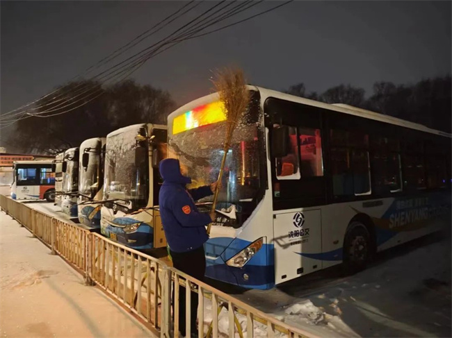 面對(duì)降溫降雪天氣,沈陽客運(yùn)集團(tuán)秉持全心全意為乘客服務(wù)的宗旨,確保公交車輛安全有序運(yùn)營,滿足市民雪天出行需求。