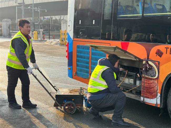 公交車作為城市交通的重要組成部分,承載著大量乘客的出行運(yùn)輸任務(wù)。為了提高應(yīng)對各類突發(fā)事件的能力,12月28日,市交通運(yùn)輸局在沈陽客運(yùn)集團(tuán)通利康龍公司院內(nèi)開展沈陽公交行業(yè)燃?xì)廛囕v突發(fā)事件應(yīng)急演練、極寒風(fēng)雪惡劣天氣應(yīng)急演練。市交通局公共(軌道)交通執(zhí)法大隊(duì)大隊(duì)長徐振寧,各公交企業(yè)相關(guān)負(fù)責(zé)人,客運(yùn)集團(tuán)領(lǐng)導(dǎo)班子一同參加了此次演練活動。