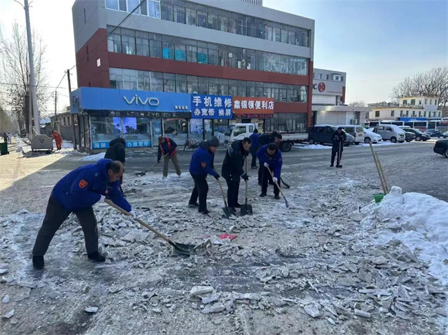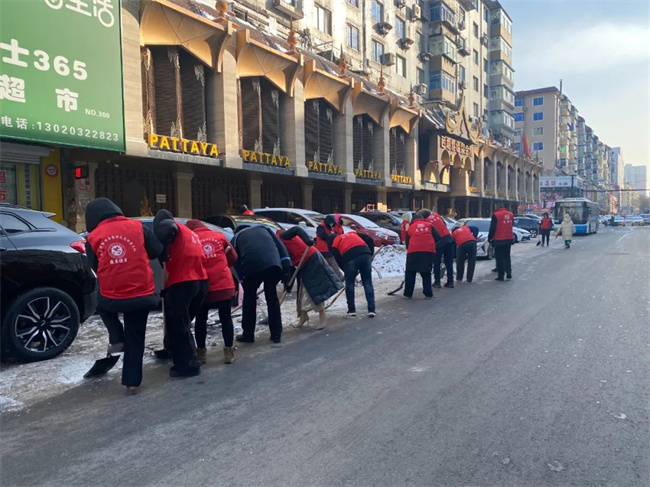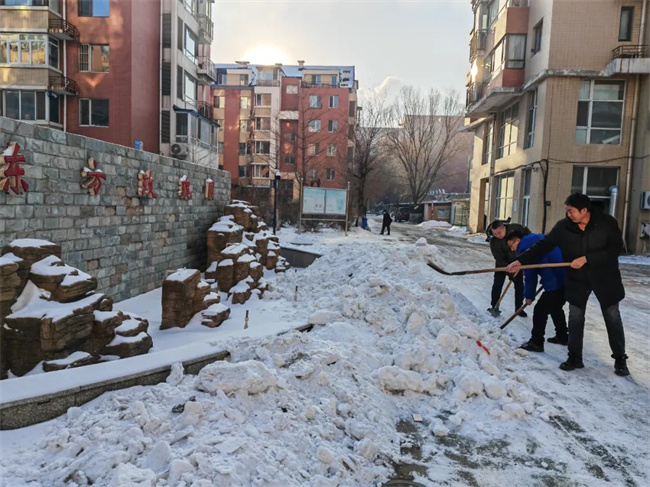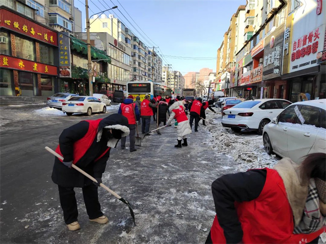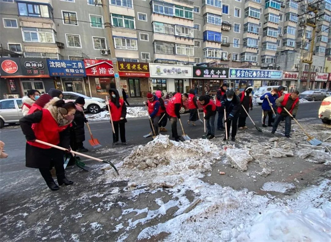 機(jī)關(guān)黨支部攜手二臺(tái)子街道福城社區(qū)黨總支共同鏟除社區(qū)道路及背街小巷的積雪。大家不畏嚴(yán)寒、默契協(xié)助,齊心協(xié)力,清理出一條條安全暢通的道路,為寒冷的冬日增添了溫暖。