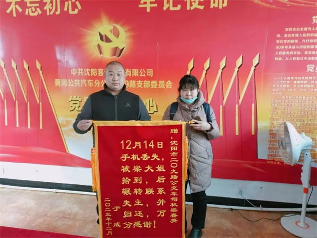 這部價值5000多元的手機失而復(fù)得,失主于女士非常開心,為表感激之情,趁著元旦假期,于女士將一面錦旗送到了209路車隊。