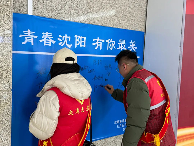大家以飽滿的熱情向廣大乘客提供引導(dǎo)咨詢、秩序維護、扶老攜幼等志愿服務(wù),用自己的實際行動讓外地來沈旅客感受到了“沈陽溫度”。