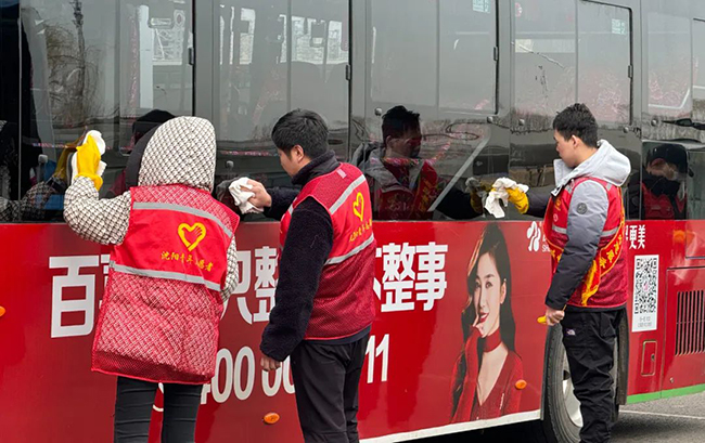 活動開始后,團員青年及志愿者在簽名板上寫下了自己的名字,以此響應(yīng)號召成為新時代雷鋒精神的傳播者、弘揚者和踐行者。團員青年及志愿者佩戴“我是雷鋒”標識胸牌,并對沈陽南站樞紐站進行大清掃活動,清理車內(nèi)外衛(wèi)生,擦亮沈陽窗口,樹立公交新形象。