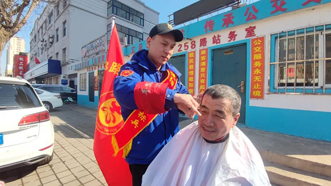 通利、康龍公司258路車隊(duì)的職工們化身志愿者為外地乘客進(jìn)行路線引導(dǎo)咨詢、景點(diǎn)游覽解說,來到公交車站附近維持秩序、清潔環(huán)境、擺放共享單車,并為環(huán)衛(wèi)工人免費(fèi)理發(fā)。