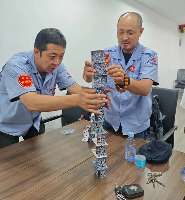 活動(dòng)伊始,老師將參加活動(dòng)的19名職工分成了三組,大家在老師的指導(dǎo)下進(jìn)行了切土豆、馬蓮花開(kāi)等互動(dòng)游戲,現(xiàn)場(chǎng)氣氛迅速活躍起來(lái)。隨后,通過(guò)撲克擺放、卡牌等游戲,讓大家逐漸了解自己和隊(duì)友的性格特點(diǎn)、興趣愛(ài)好以及潛在的心理需求,為后續(xù)的團(tuán)隊(duì)協(xié)作打下了良好的基礎(chǔ)。