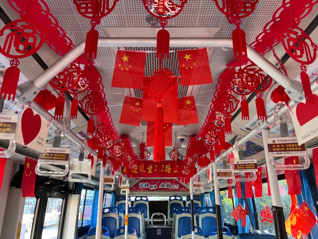 國慶前夕,駕駛員精心清潔車輛、裝扮車廂,處處洋溢著節(jié)日氣氛。