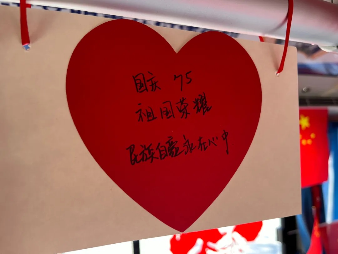 各車隊(duì)準(zhǔn)備了各式各樣的裝飾品精心裝扮自己的車廂。駕駛員們將自己對祖國的美好祝愿注入在這十米車廂之中,希望能把這份心意傳遞給每一個人。市民們在乘車時被這份情感所感染,也紛紛留下了自己的心愿和祝福。