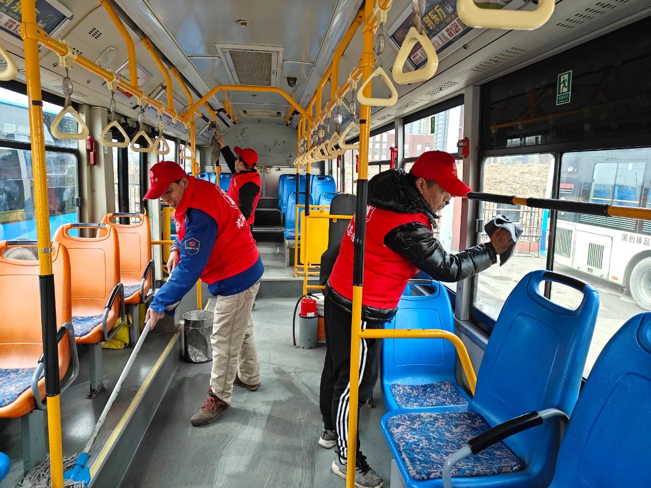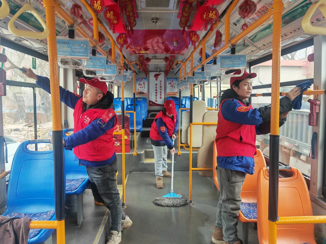 早春的寒風(fēng)依舊冷冽,活動中,志愿者們不畏寒冷,身穿帶有志愿服務(wù)標(biāo)識的紅色馬甲,手拿清潔工具,對公交車輛、場站、候車?yán)鹊葓鏊M行清掃,為乘客提供干凈舒適的出行環(huán)境。
