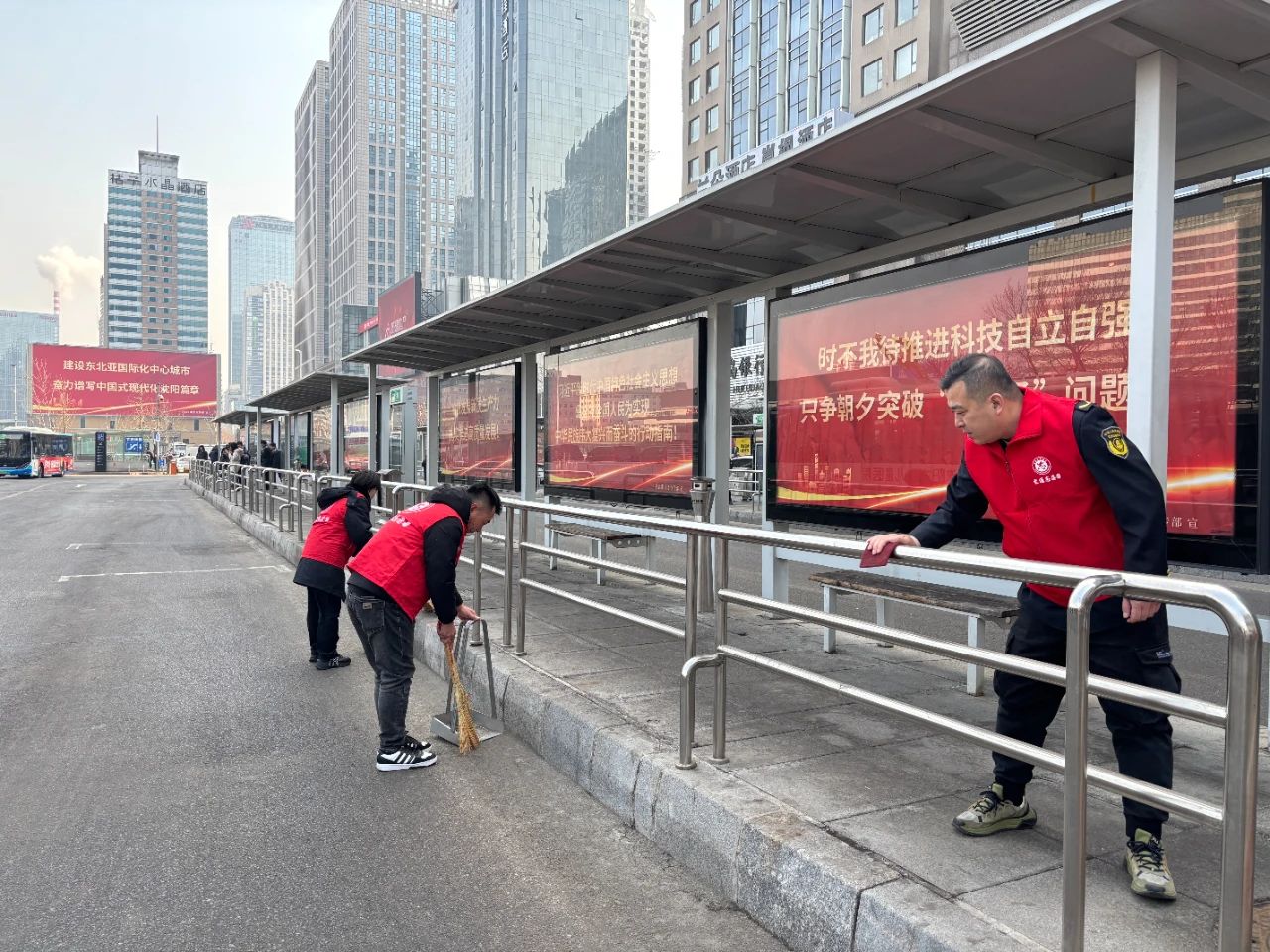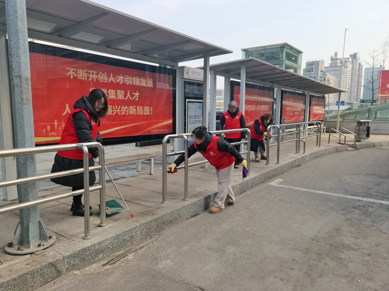 早春時節(jié)乍暖還寒,活動中,各支部的志愿者們不畏寒冷,身穿志愿服務(wù)字樣的紅馬甲,手拿清潔工具,對場區(qū)、辦公區(qū)的殘雪、垃圾以及候車?yán)鹊淖?、欄桿、站牌上的小招貼小廣告進行細致清理,不放過任何一個角落。在志愿者們的共同努力下,大家的工作環(huán)境更美了,周邊公共區(qū)域的環(huán)境更靚了。
