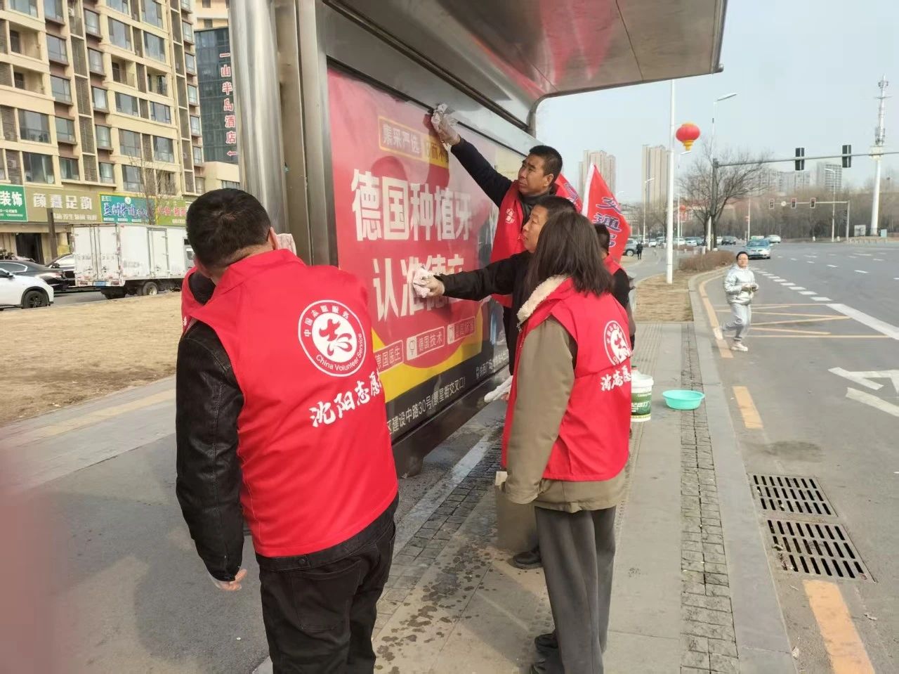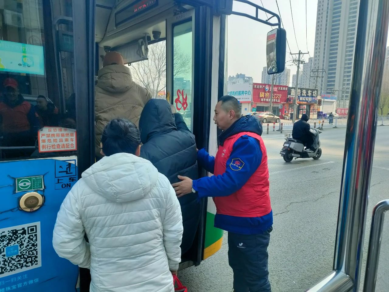身披紅色綬帶的志愿者們熱情滿滿,為乘客提供咨詢引導(dǎo)服務(wù),耐心解答各類出行疑問,幫助公交站點進行環(huán)境升級。