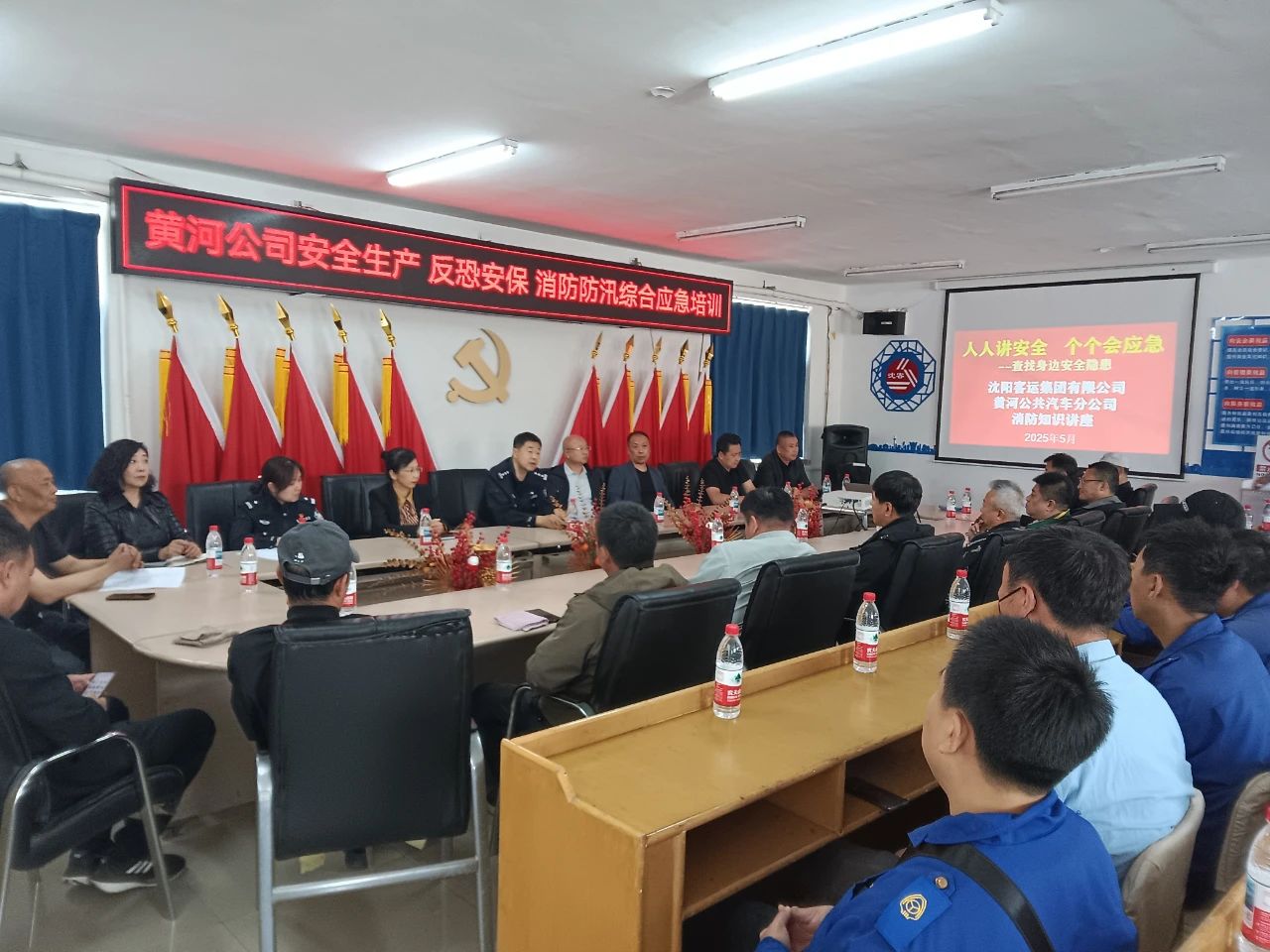 為提高職工的消防安全責(zé)任意識(shí),進(jìn)一步加強(qiáng)安全生產(chǎn)、反恐安保、消防防汛等工作,5月8日下午,黃河公司與票務(wù)中心聯(lián)合開(kāi)展安保反恐消防培訓(xùn)及應(yīng)急演練。公交軌道分局王兆民處長(zhǎng),沈陽(yáng)民安消防咨詢(xún)服務(wù)中心王殿陽(yáng)主任,集團(tuán)相關(guān)部門(mén)負(fù)責(zé)人,黃河公司負(fù)責(zé)人、相關(guān)部門(mén)負(fù)責(zé)人、各車(chē)隊(duì)隊(duì)長(zhǎng)及駕駛員代表參加了本次培訓(xùn)。