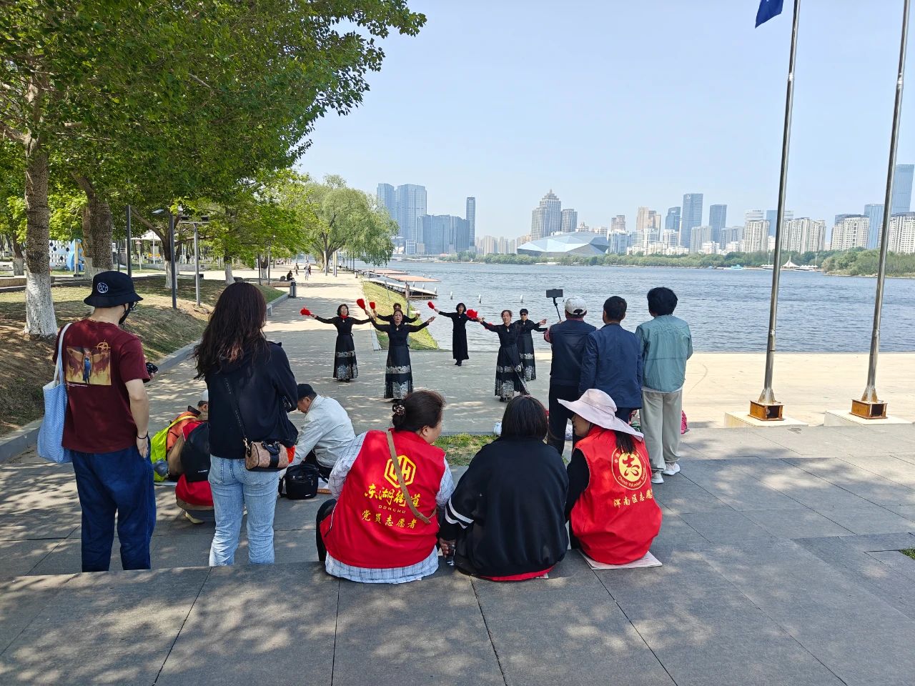 當(dāng)天清晨9點,載滿歡聲笑語的公交車準(zhǔn)時出發(fā)。在奧林匹克公園河畔,老人們漫步林蔭道,賞花觀景、拍照留念,社區(qū)老年模特隊身著馬面裙,手拿紅色折扇在湖邊翩翩起舞驚艷全場,翩躚身影與粼粼波光相映成趣。返程途中,車廂化身為"流動文化站",黨員志愿者帶領(lǐng)老人們開展紅歌聯(lián)唱,《我和我的祖國》《沒有共產(chǎn)黨就沒有新中國》的旋律此起彼伏,溫情涌動間拉近了黨群距離。