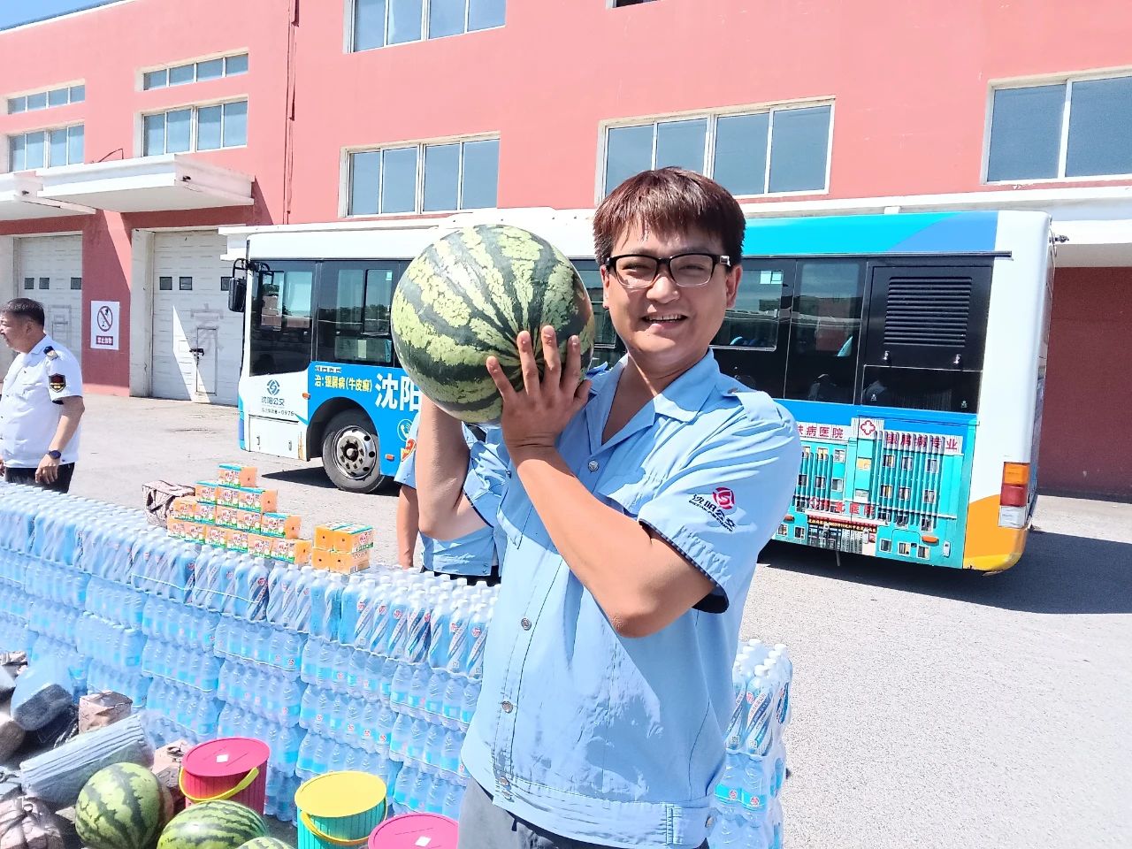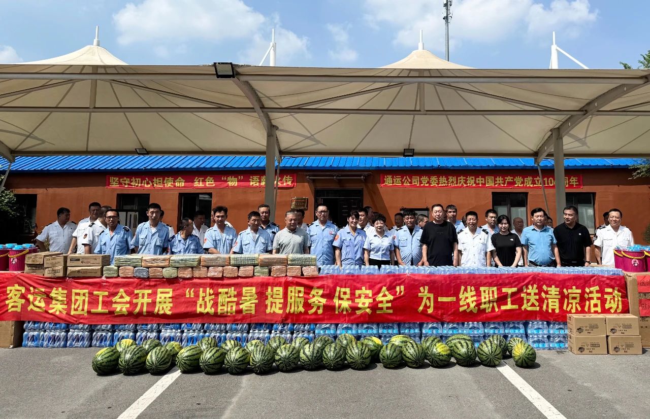 活動中,客運(yùn)集團(tuán)領(lǐng)導(dǎo)班子成員分別帶隊(duì)深入各基層單位,親切看望并慰問了在高溫酷暑中辛勤工作的廣大一線職工,為駕駛員們送上了精心準(zhǔn)備的防暑降溫“清涼禮包”,其中包括實(shí)用貼心的毛巾、水桶,以及解暑必備的礦泉水、鹽汽水和甘甜多汁的西瓜等物資。