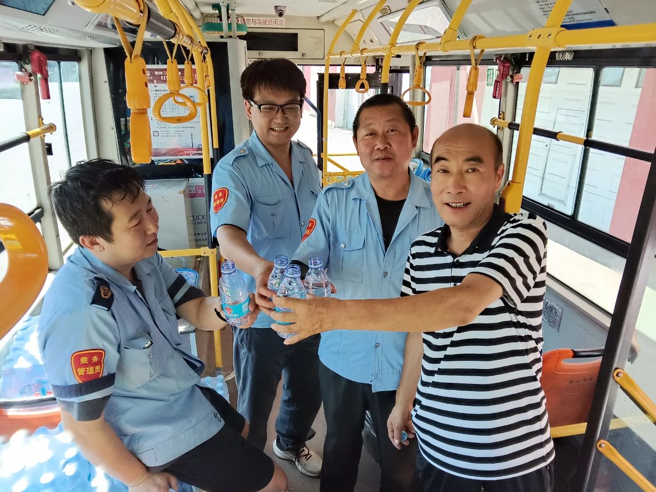 217路駕駛員張玲和228路駕駛員王裕波分別購置了30多箱礦泉水,送到車隊(duì),分享給朝夕相處的“兄弟姐妹”,彰顯了公交大家庭的溫暖與團(tuán)結(jié)。