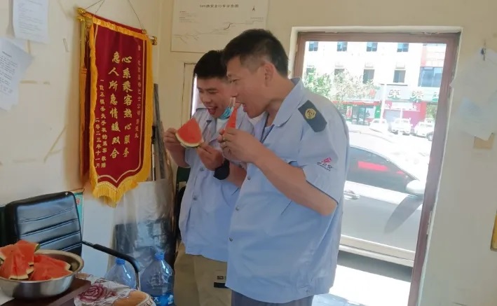 在這個酷熱的夏天里,車隊(duì)為駕駛員們精心準(zhǔn)備了清涼解渴的西瓜和消暑佳品綠豆粥,讓駕駛員們在短暫的休息時(shí)間里,得以迅速緩解燥熱與疲憊,恢復(fù)元?dú)猓U鲜忻癜踩孢m出行。
