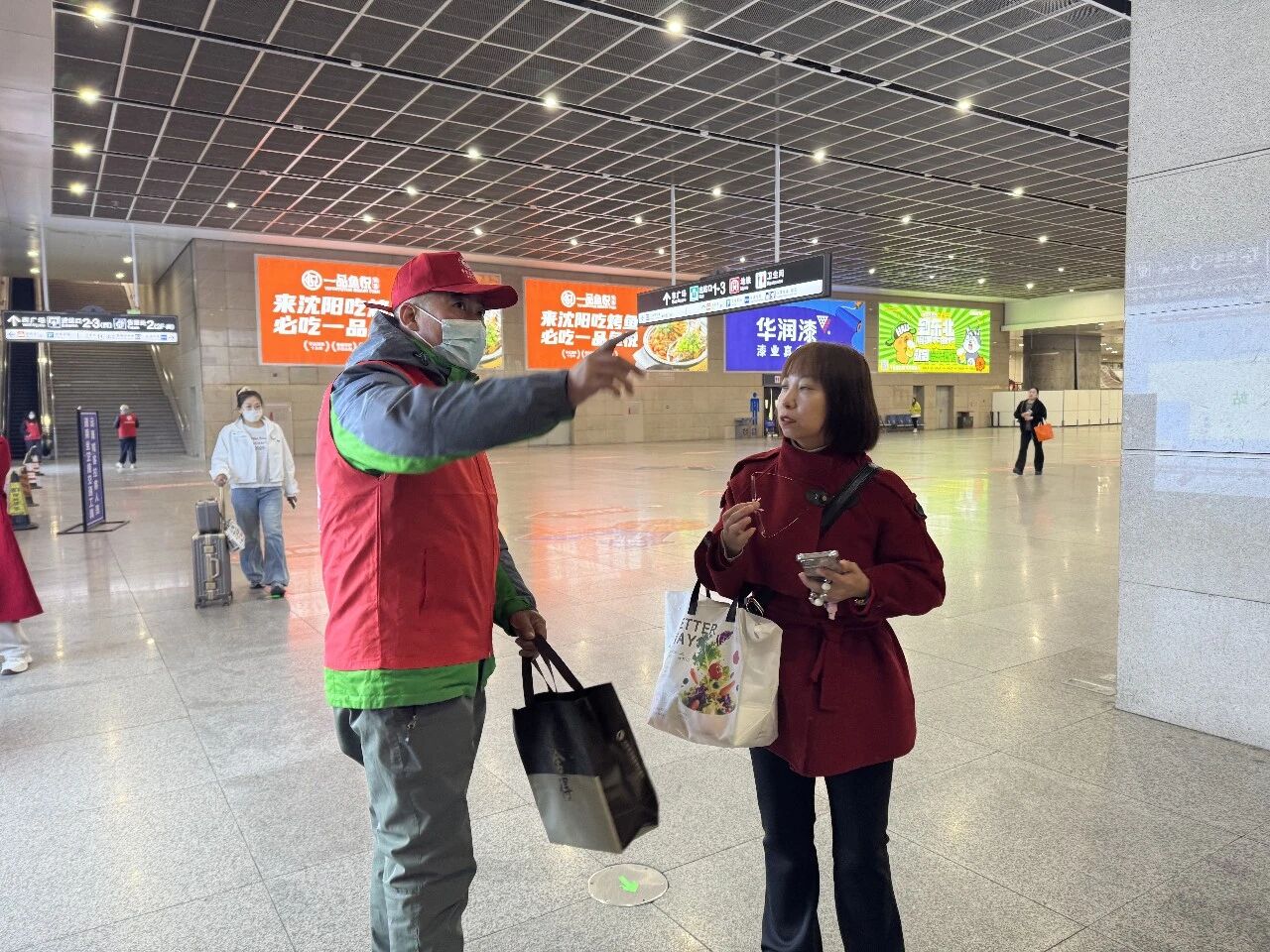 一位從外地回沈陽(yáng)的王女士感慨:“剛出站有點(diǎn)懵,志愿者不僅告訴我怎么坐車(chē),還提醒我注意臺(tái)階,幫我查了目的地附近的餐館。沈陽(yáng)的第一印象,就是暖?!?/p>
