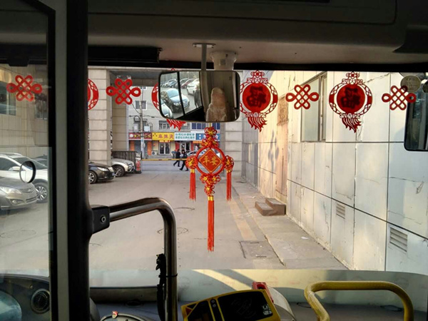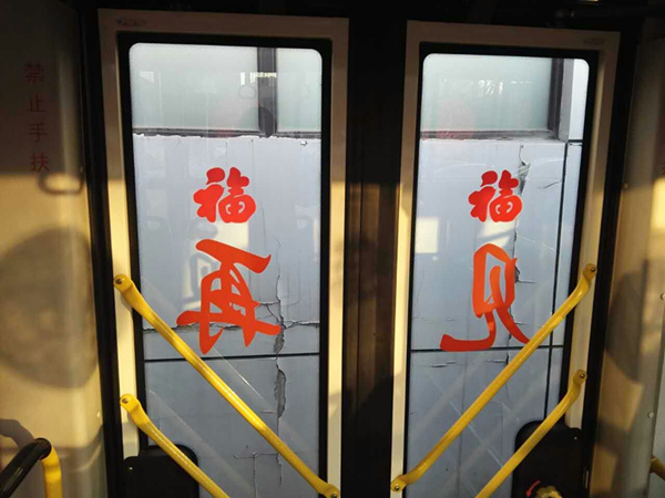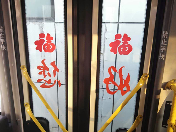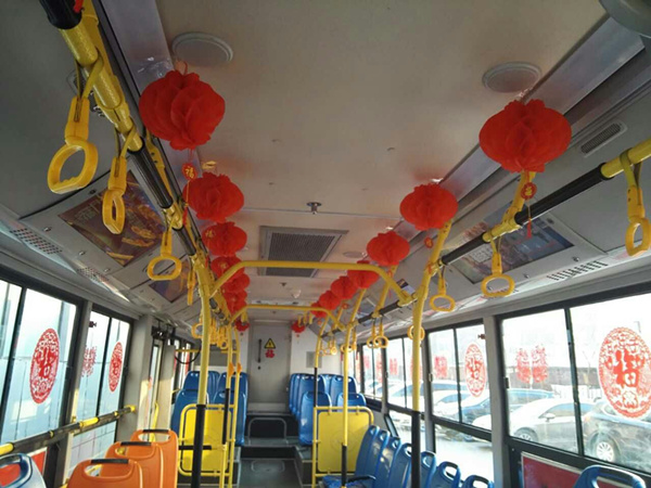 沈陽(yáng)客運(yùn)集團(tuán)公司精心布置了車(chē)輛,粘貼了新年祝福標(biāo)語(yǔ)、福字、窗花,懸掛中國(guó)結(jié)和小燈籠,在車(chē)廂內(nèi)進(jìn)行裝飾,營(yíng)造出移動(dòng)的溫馨家庭感覺(jué)。