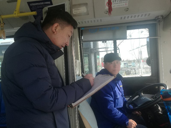 為了保證廣大市民的安全出行,使公交車輛正常運(yùn)行,沈蘇公司130路車隊(duì)管理人員全部上線,勘查運(yùn)營(yíng)路線上的路面結(jié)冰情況;同時(shí),車隊(duì)的管理人員做為路況報(bào)道員,第一時(shí)間把路況報(bào)道發(fā)到車隊(duì),讓車隊(duì)能夠及時(shí)了解線路情況及時(shí)掌握交通情況。