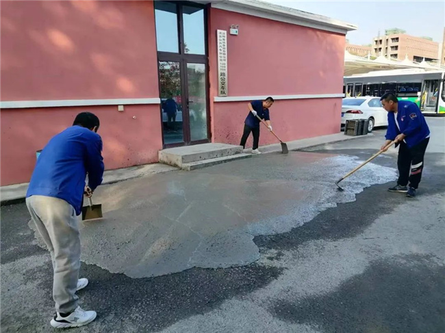 10月11日,沈蘇、鑫暢公司130路車隊(duì)開展“振興新突破,我要當(dāng)先鋒”活動,對場區(qū)南側(cè)的路面大坑進(jìn)行了清理及修復(fù)。