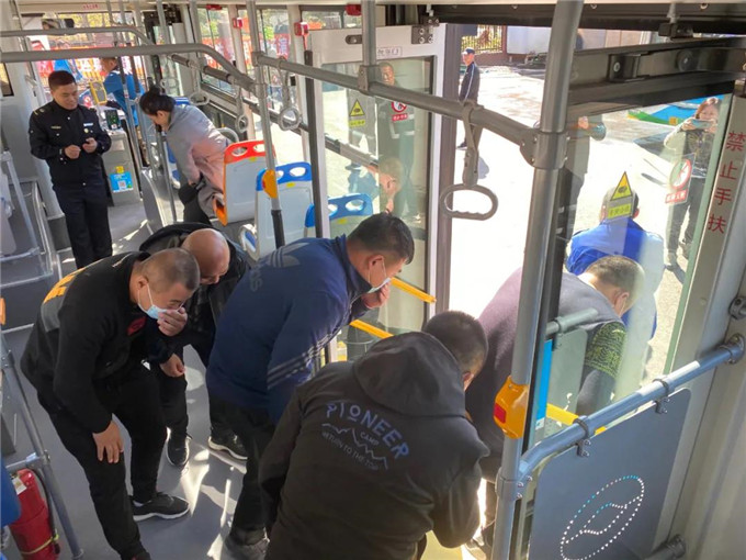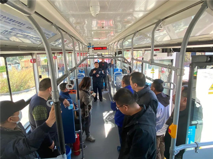 消防安全演練中,李教官在公交車上講解安全錘的正確使用方法,并模擬公交車失火后的逃生方法及注意事項,迅速、有序、規(guī)范地從公交車出口疏散。隨后,李教官詳細(xì)介紹滅火器的正確使用方法及滅火時的注意事項,現(xiàn)場指導(dǎo)職工進(jìn)行滅火演練。