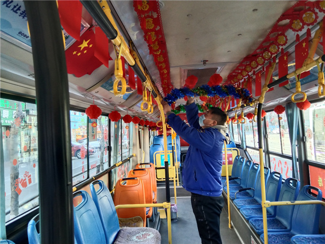 在共產(chǎn)黨員先鋒崗丁亞南駕駛的車上,紅色紙燈籠、藍(lán)色綠色拉花、福字串、窗貼,寫著牛年大吉的彩板畫一應(yīng)俱全,節(jié)日氣氛十分濃厚,車廂里不時(shí)傳來乘客們的贊揚(yáng)聲和感謝聲。提到裝扮車廂的初衷,他表示:“這不是疫情嘛,疫情本來大伙心情都比較沉重,我就弄了點(diǎn)兒新年的氣氛,讓大家放松放松心情。我是一名共產(chǎn)黨員,為乘客服好務(wù)是我的宗旨,疫情期間,更需要我們沖鋒在前,迎難而上,為大家樹立好黨員的形象?!?/p>