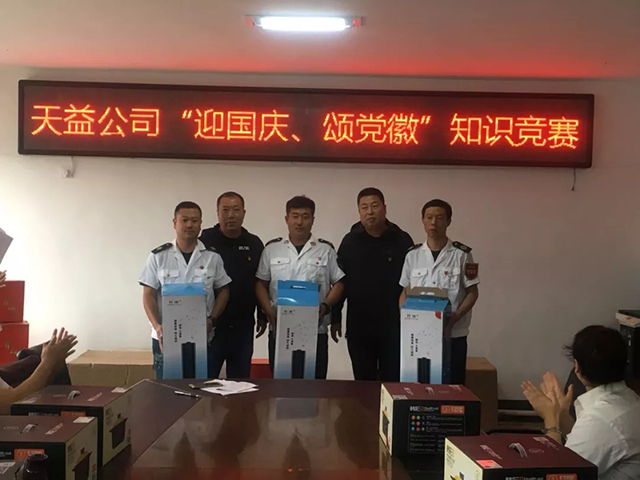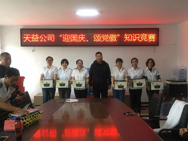 近日,天益公司黨委在公司會議室舉行“迎國慶、頌黨徽”黨建知識競賽活動,來自公司所屬11個黨支部,共33人參加競賽;公司黨委副書記、紀委書記趙立東、副經(jīng)理丁峰同志、基層各黨支部書一同參加了本次比賽。