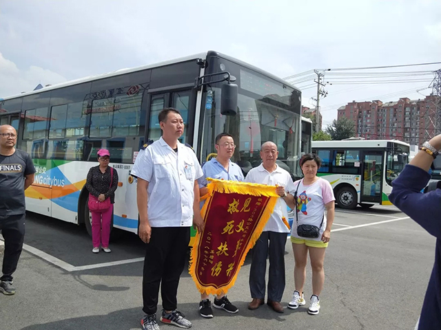 原來(lái),老人今年67歲,由于天氣炎熱,坐公交車時(shí)出現(xiàn)腦供血不足導(dǎo)致抽搐暈厥。幸虧處置得當(dāng),才使老人轉(zhuǎn)危為安。已經(jīng)康復(fù)出院的老人對(duì)為自己伸出援手的駕駛員黃健充滿感激,親自帶著女兒王女士一起來(lái)到303路,將一面錦旗送到黃健手中,并聯(lián)系新聞媒體對(duì)黃健進(jìn)行了采訪。采訪中,黃健的話語(yǔ)樸實(shí)無(wú)華:“公司和車隊(duì)的領(lǐng)導(dǎo)經(jīng)常教育我們,乘客坐了我們的車,我們就應(yīng)該把乘客照顧好,不管乘客發(fā)生什么意外,我們都應(yīng)該盡到一名公交司機(jī)應(yīng)盡的責(zé)任”。