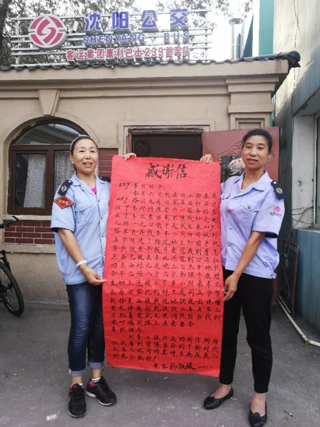 9月11日上午,乘客楊淑媛的女兒把感謝信親自送到康利公司239路車隊站務室,感謝駕駛員劉立寧、董愛武對自己母親的暖心幫助。