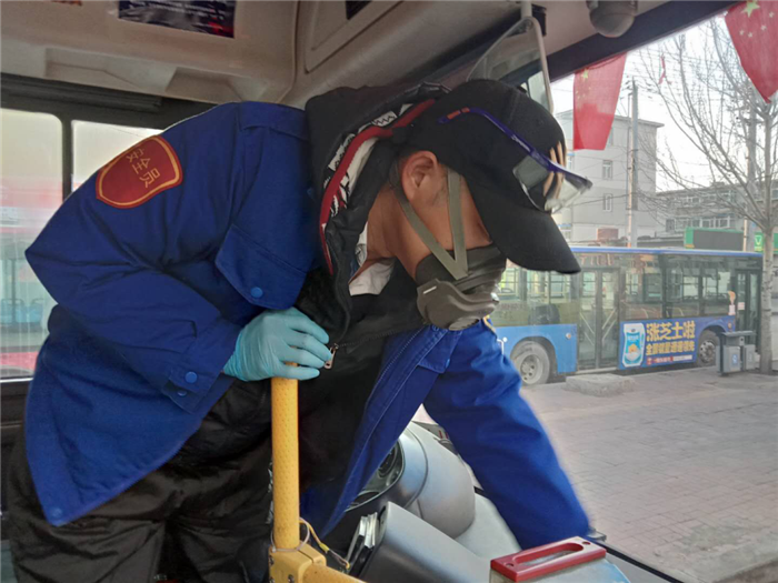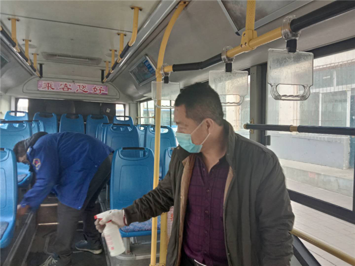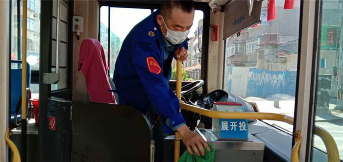 根據(jù)疫情防控情況,399路車隊(duì)長劉濤帶領(lǐng)駕駛員們?yōu)楣痪€路常態(tài)化營運(yùn)默默付出辛勤的勞動。他們堅(jiān)持每天對所有營運(yùn)車輛消毒、通風(fēng),重點(diǎn)對座椅、扶手、拉環(huán)等乘客易接觸的部位進(jìn)行擦拭消毒,時刻做好自身防護(hù)。車隊(duì)要求所有人員上崗必須佩戴口罩和接受體溫檢測,最大限度遏制病毒傳播的渠道。每天在認(rèn)真做好車輛消毒、通風(fēng)工作的同時,還積極為乘客做好掃碼登記提醒等工作,盡職盡責(zé),護(hù)航每一位乘客。